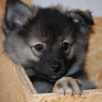 Das Herz von Frauchen gehörte mir zu diesem Zeitpunkt schon, war ich doch eine Tochter von ihrem geliebten Bellchen. Mit Herrchen musste noch etwas diskutiert werden, aber ich war zuversichtlich. Meine Farbe war unschlagbar: Die erste Mittelspitzhündin in black & tan die in Deutschland geboren ist, das gab so noch nicht.